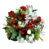 Buquê com 06 Rosas Brancas Nacionais e Astromélias Variadas