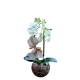 Orquídea Azul com 02 Hástes no Vaso de Madeira.
