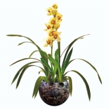 Orquídea Cybidium amarela no Vaso de Vidro